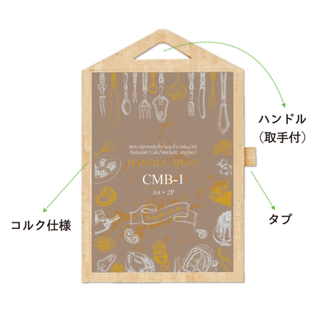 【CMB-2】ハンドルタイプクリアメニュー(A4/4P/二つ折)